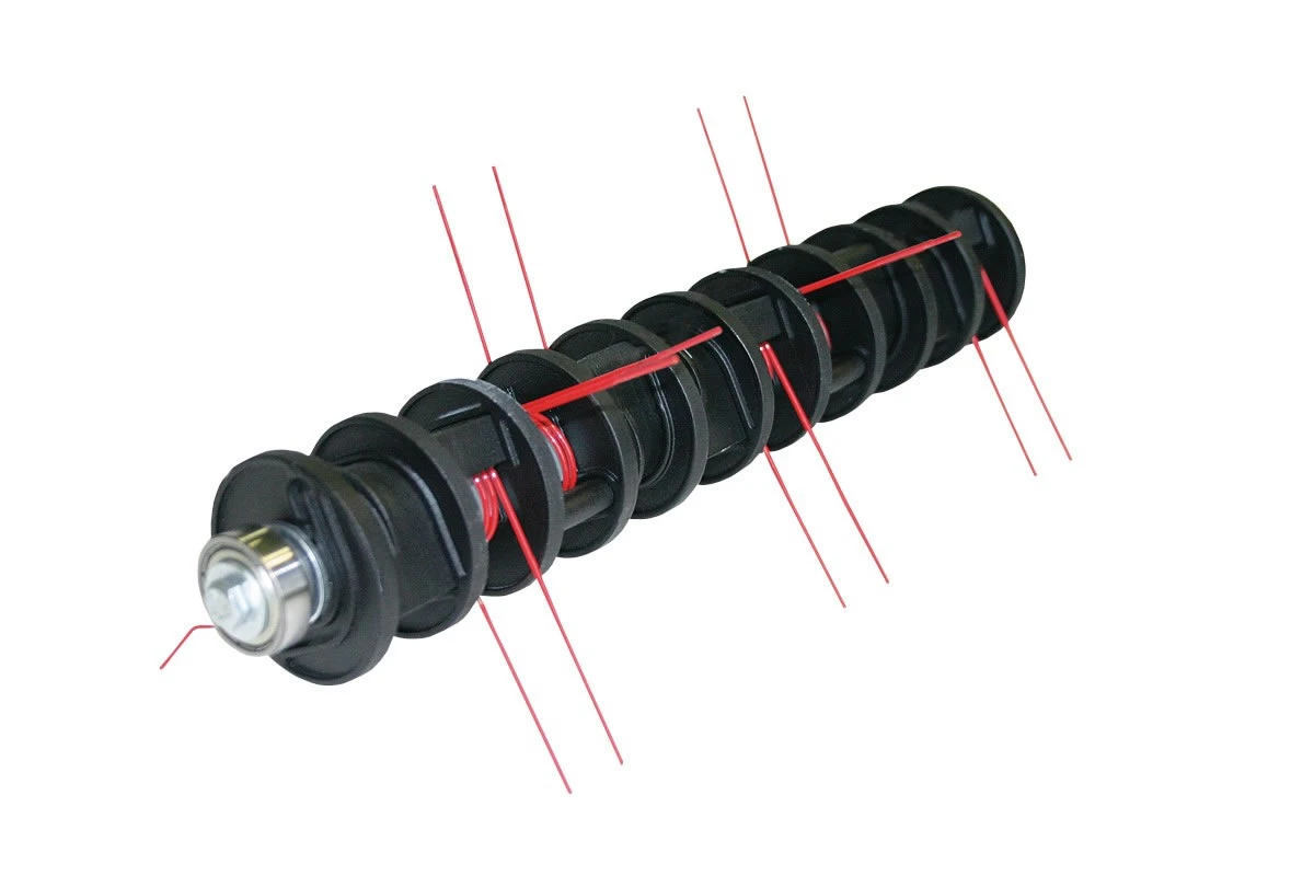 The roller change does not require tools, so it is simple to change from the scarifier roller with 3-stage steel blades to the lawnrake roller with efficient steel spring tines – complete lawn care in one machine.