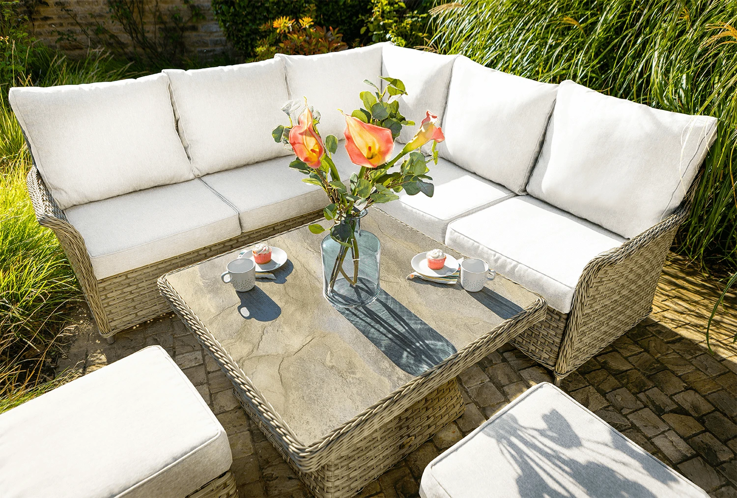 This Hartman Heritage Tuscan Square Casual Dining Set is spacious, versatile and fantastic for entertaining guests. Whether you’re having a sit-down meal, a couple of drinks at the weekend or just a chat over a cup of tea, this furniture set has got you covered. It has a height adjustable table, with a stunning Tuscan ceramic glass top, which quickly and easily converts from coffee table to casual dining table in seconds with the easy adjust function.