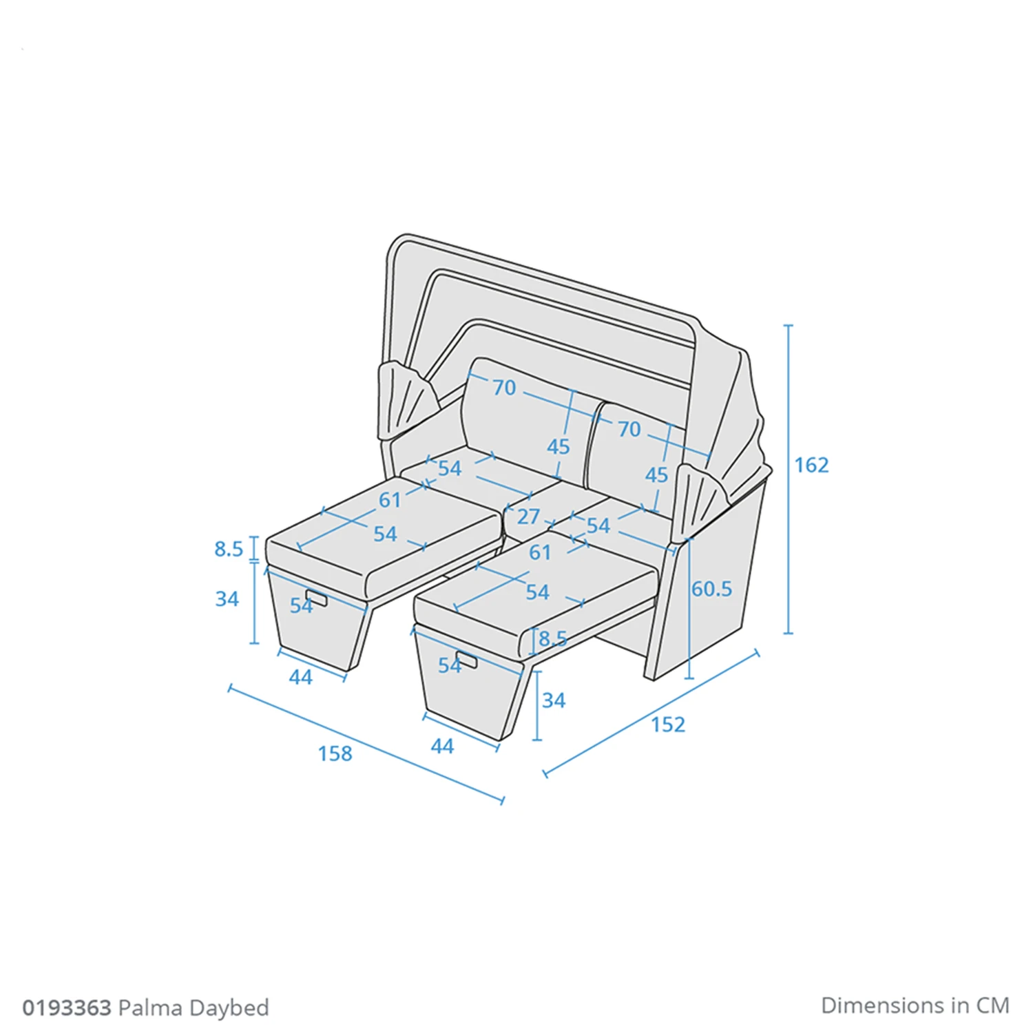 The Palma Daybed is perfect for lounging outdoors. Made from a strong aluminium frame with handwoven weatherproof synthetic weave, this 2 seater daybed has comfy cushions on the back rest and the seat pad, enabling you to sit or lie down with ease.