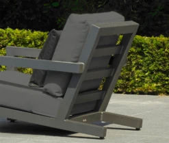 The Aloha comes in an attractive yacht grey wicker and lava coloured aluminium combination, which requires little maintenance. The seating has hard wearing aluminium arms and feet, and frost and UV resistant wicker back and sides. The table, meanwhile, has a matching aluminium frame and a spraystone top. Complimenting this is the set’s soft and comfortable carbon cushions. These are made of a hard wearing fabric, which enables them to be left out during the summer season, come rain or shine.