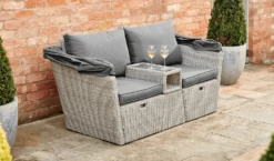Kettler Palma Grande Fire Pit Corner Sofa Set In White Wash / Taupe